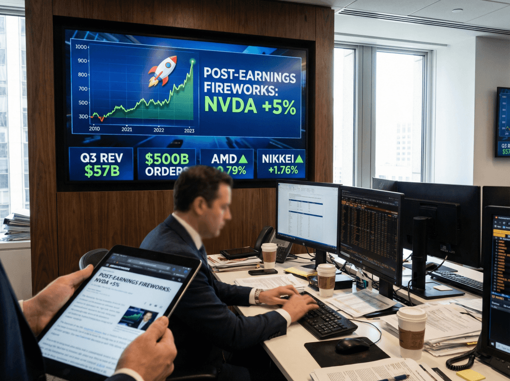 NVIDIA Corporation (NVDA) ignited a market rally with its third-quarter fiscal 2026 earnings, reporting $57 billion in revenue that beat analyst expectations of $54.9 billion. The results highlighted surging demand for AI chips, propelling NVDA stock up over 5% in after-hours trading following the announcement. This performance not only boosted NVIDIA but also lifted peers like Advanced Micro Devices, Inc. (AMD) and global indices such as Japan’s Nikkei 225.