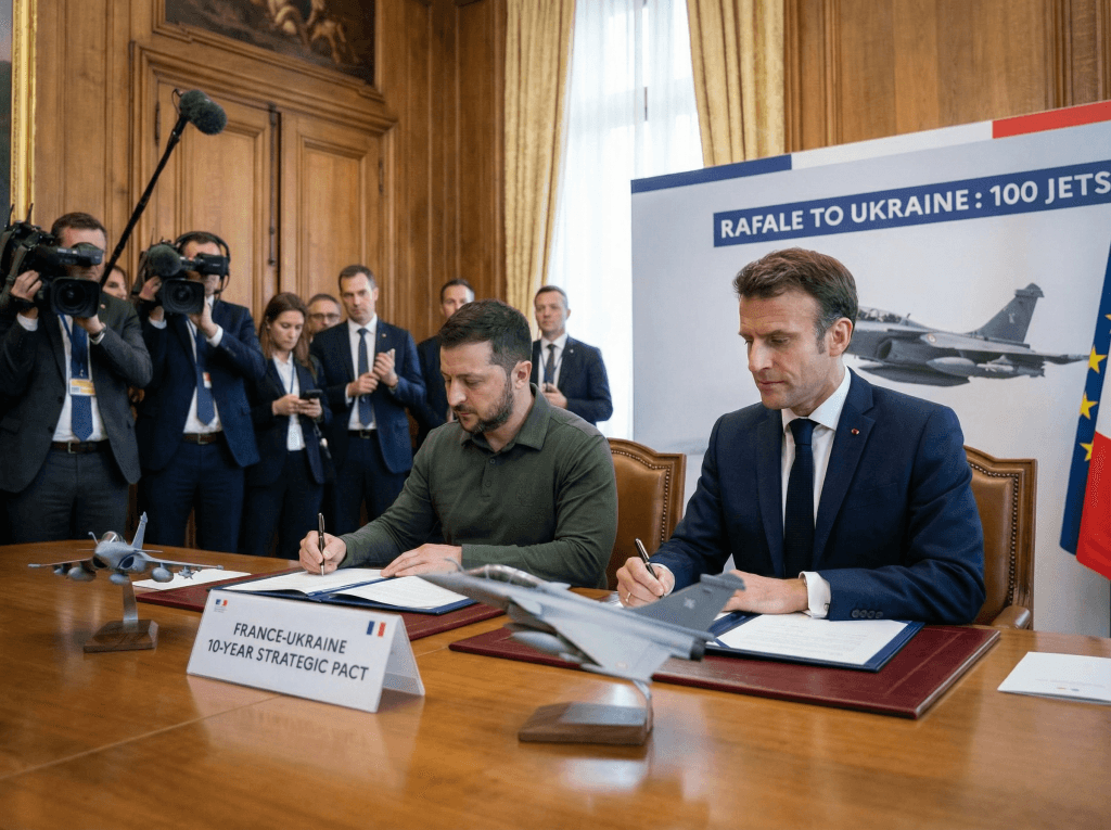 In a landmark development amid ongoing geopolitical tensions, Ukrainian President Volodymyr Zelensky and French President Emmanuel Macron signed a letter of intent on November 17, 2025, paving the way for Ukraine to acquire up to 100 advanced Rafale F4 fighter jets over the next decade. This strategic agreement, described by Zelensky as historic, includes additional military hardware like air defense systems and drones, aiming to bolster Ukraine’s aerial capabilities against Russian aggression. The deal underscores France’s commitment to European defense leadership, especially as uncertainties loom over U.S. support under President Donald Trump.