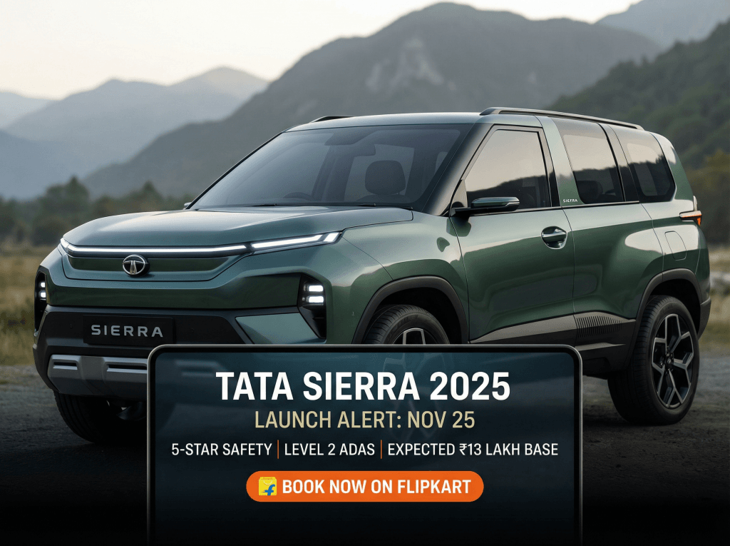 Tata Sierra 2025 Launch Alert: Nov 25 with 5-Star Safety & Level 2 ADAS – Expected ₹13 Lakh Base, Book Now on Flipkart